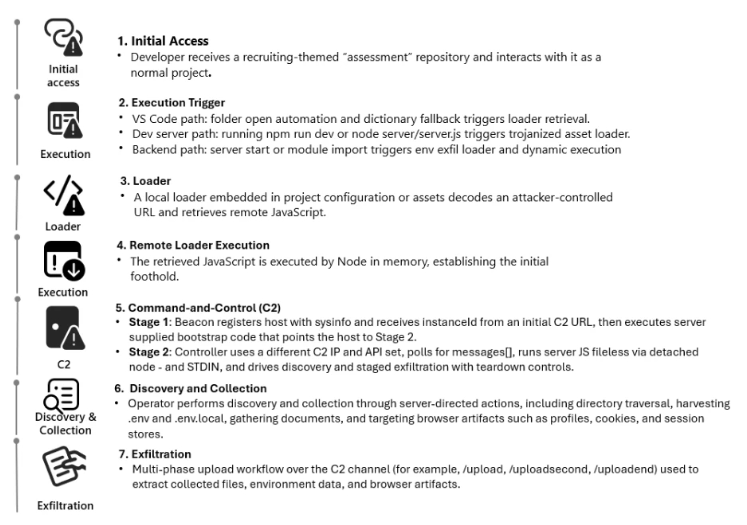 Essas táticas aparecem frequentemente em uma operação conhecida como Contagious Interview, que utiliza propostas de emprego falsas para comprometer profissionais da área de tecnologia.