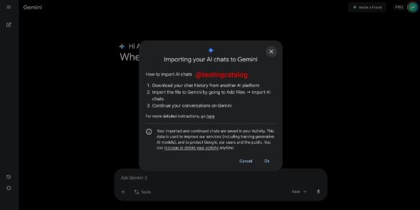 Gemini deve permitir transferência de conversas de outras plataformas de IA