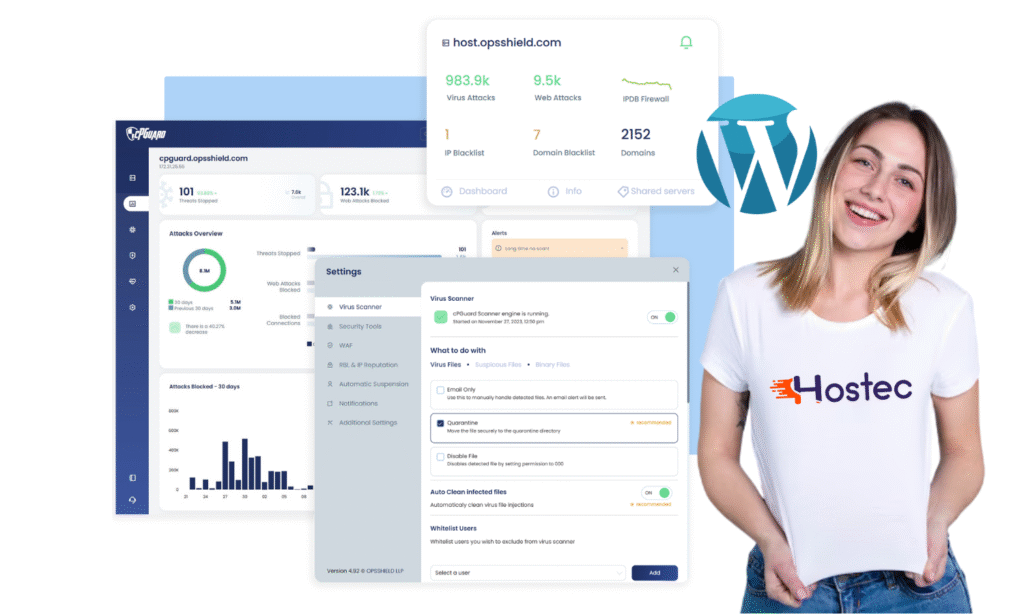 Por isso, o cPGuard introduziu uma função aprimorada de WordPress Management que simplifica segurança, atualizações e monitoramento. E o melhor: todos os servidores de hospedagem de sites e e-mails profissionais da Hostec já utilizam esse recurso ativo, para que você não precise mexer com nada técnico — a proteção já vem de fábrica.
