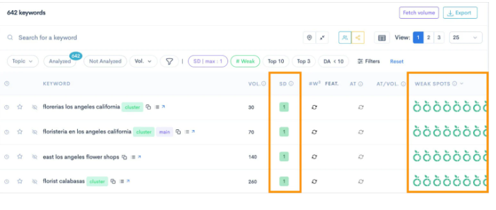 Isso facilita a localização das palavras-chave LSI e das variações de cauda longa que discutimos, ajudando você a criar seus agrupamentos de tópicos sem precisar sair do editor.