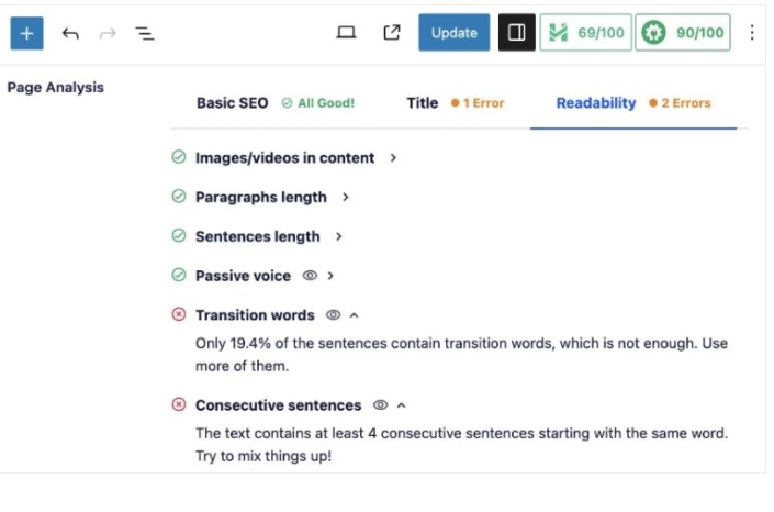 Também inclui uma Lista de Verificação de Legibilidade que analisa a facilidade com que os usuários podem ler e compreender o seu conteúdo.