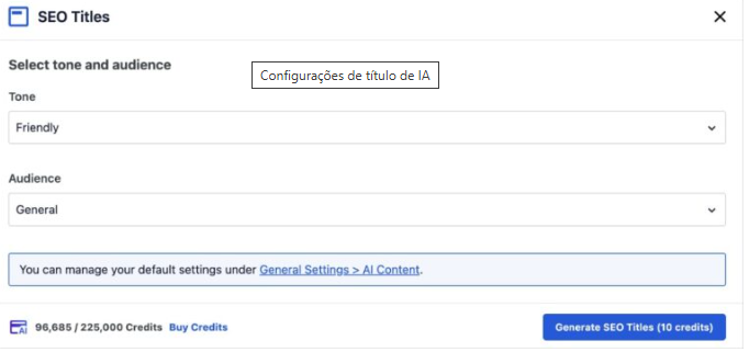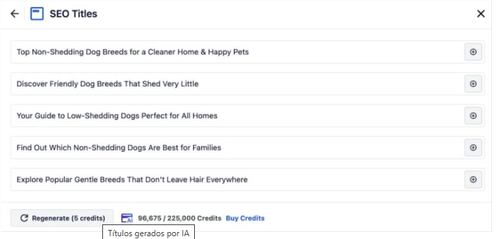 Após selecionar as opções desejadas, clique em Gerar título SEO .
