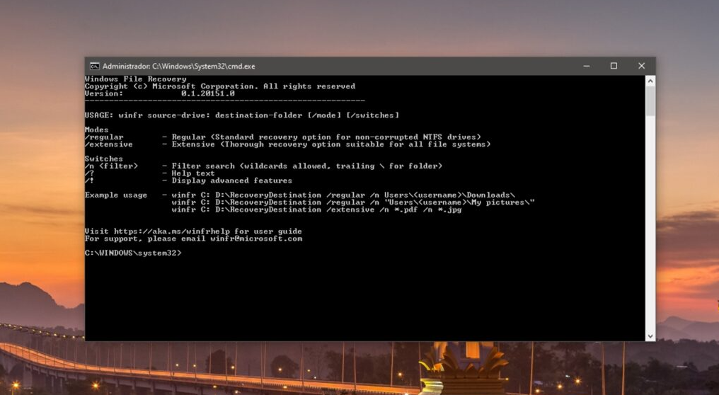 Se você quiser utilizar o Windows File Recovery, siga este procedimento: