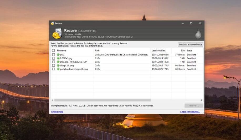 O Recuva costuma apresentar bons resultados, embora possua uma interface um pouco antiga. Além disso, ele oferece menos recursos avançados em comparação com outras soluções de recuperação de dados.