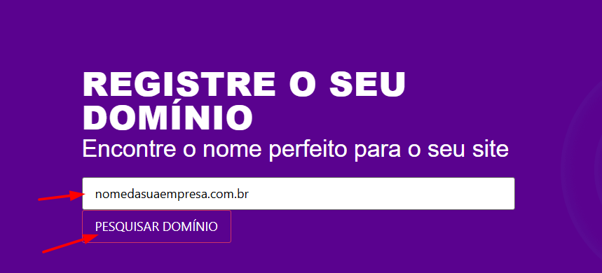 Após digitar, clique em pesquisar domínio para verificar se o nome está disponível.